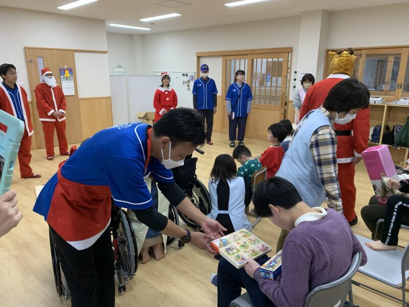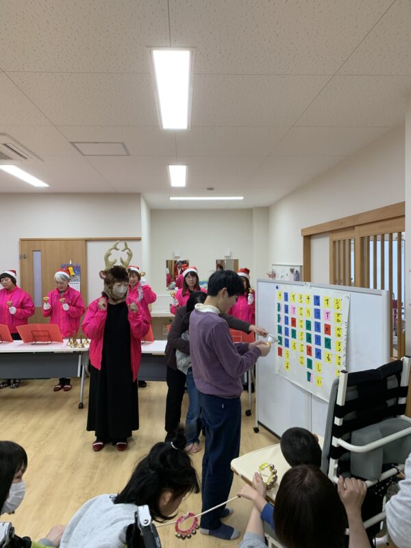 事業所に通う児童生徒の皆さんに楽しいひと時を過ごして欲しいとの思いから、クリスマス会を開催しました。