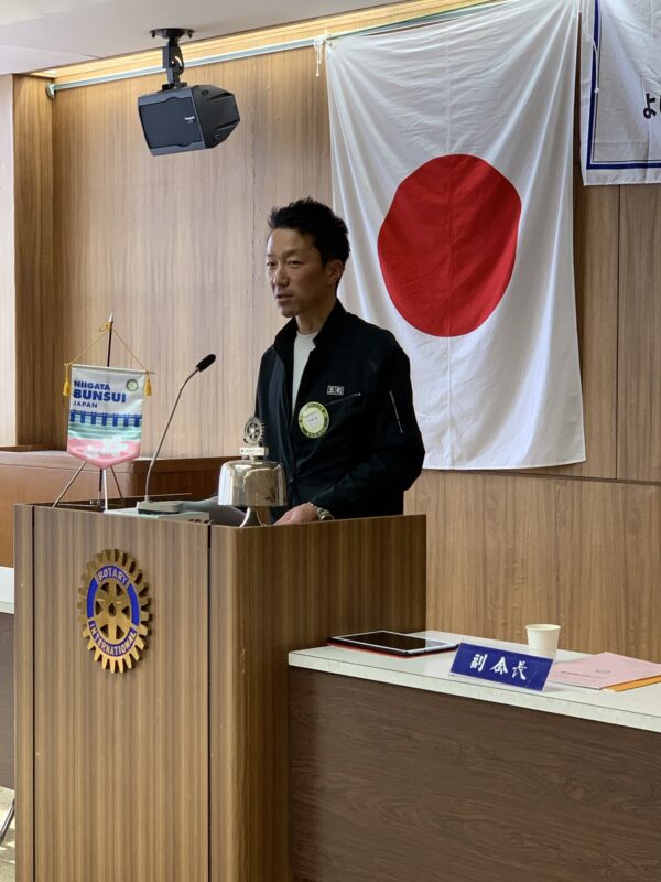 本日のゲストは、燕ロータリークラブの佐野大輔様です。『これまでの私、これからの燕市』と題して、様々な角度からお話いただきました。