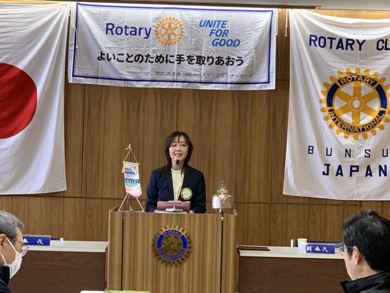 もう一人のゲストは、12月から入会する新会員、エース薬局の三浦麻美子様です。この頃入会者が増えつつある分水ロータリークラブですが、来月からまた新しい仲間が加わることで、益々活気が出てきそうです。