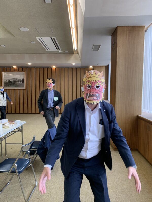 また、今日は節分という事で、食事前に豆まきをしてみんなで雰囲気を楽しみました。米山奨学生の李浩倫(りはおるん)さんにも鬼役になってもらい、日本の伝統行事を体験する良い機会となったようです。